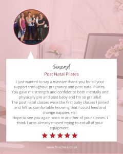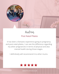 Fit school was excellent at helping me when pre and post natal. I met friends and Karen’s advice and willingness to listen to any queries was invaluable and very reassuring.